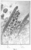 На фигуре 1 показаны вирионы ротовирусов (1), сорбированные на стенке бифидобактерий (2).