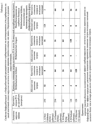 Постановку реакции гемагглютинации с опытными и контрольными образцами антигенов проводили по стандартной методике объемным методом с постановочным объемом 100 микролитров в микроплашках. В качестве контрольной системы использовали 1% взвесь эритроцитов кур. Всего было поставлено 24 исследования в пяти повторностях. Вируссодержащую жидкость каждого образца антигена раститровывали двукратными разведениями до титра 1:512. Контролем служили образцы антигенов, в которые не вносили бифидофлору. Опытные образцы исследовали после взаимодействия антигенов с бифидофлорой и с комплексом, состоящим из сорбированных на активированном угле бифидобактерий.