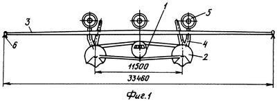 Основное крыло 3 установлено шарнирно с возможностью изменения угла атаки на всех стадиях полета на пилонах 4, которые размещены: боковые на лодках 2, центральный – на фюзеляже 1. В основном крыле 3 проходят трассы управления предкрылками и закрылками, размещены кессон-баки с запасом топлива. В пилонах 4 проходят трассы управления основным крылом 3, кессон-баки с аварийным запасом топлива, а также узлы шарнирного крепления основного крыла 3, а в центральном пилоне установлен механизм управления изменением угла атаки основного крыла 3, а также быстроразъемные узлы расстыковки с лодками 2 в аварийной ситуации.