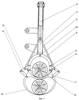 Таким образом, если внутренний профиль нижней части захватывающих зубьев 11, по которой происходит перемещение ствола, будет выполнен в виде кривой, кривизна которой соответствует участку эвольвенты развертки окружности АС (фиг.3), то ствол будет подниматься вверх с наименьшими энергозатратами, так как нормальные реакции от действия таких зубьев в течение всего процесса перемещения ствола будут направлены вверх по вертикальной оси и, следовательно, угол =0.