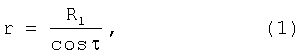 где R1 – радиус эволюты, равный расстоянию от центра шарнирного крепления челюсти 7 на дугообразном элементе 9 до вертикальной оси симметрии грейфера;