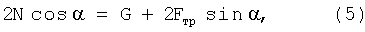 Спроецировав силы, действующие на поднимаемый ствол, на ось у (фиг.7), можно записать следующее выражение: