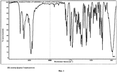 В WO 99/05105 описана термодинамически стабильная модификация карведилола, которая имеет температуру плавления (tпл) 123-126°С (в настоящем описании обозначена как форма I карведилола), в отличие от формы карведилола, описанной в ЕР 0004920, которая имеет tпл 114-115°С (в настоящем описании обозначена как форма II карведилола).