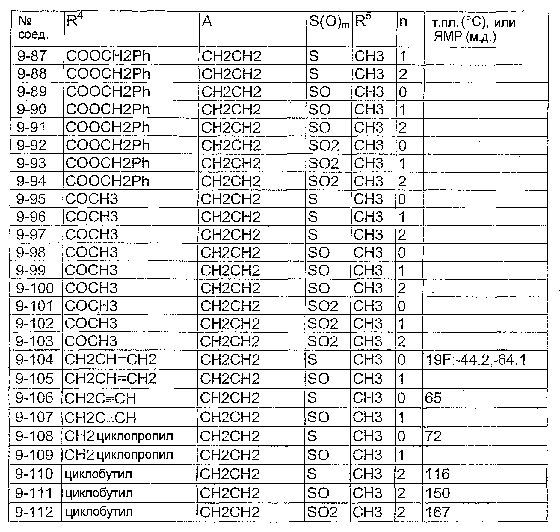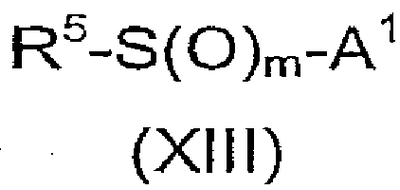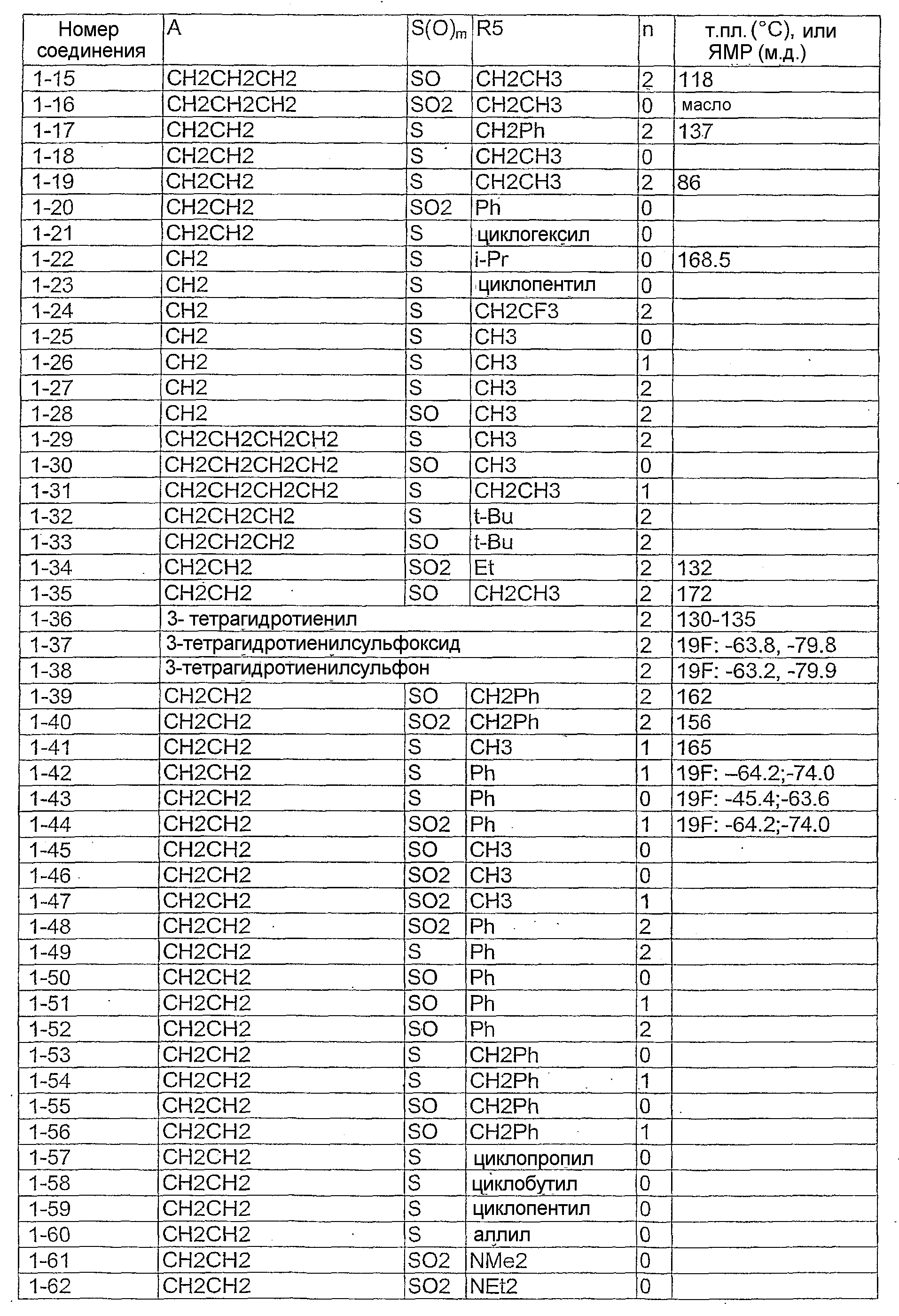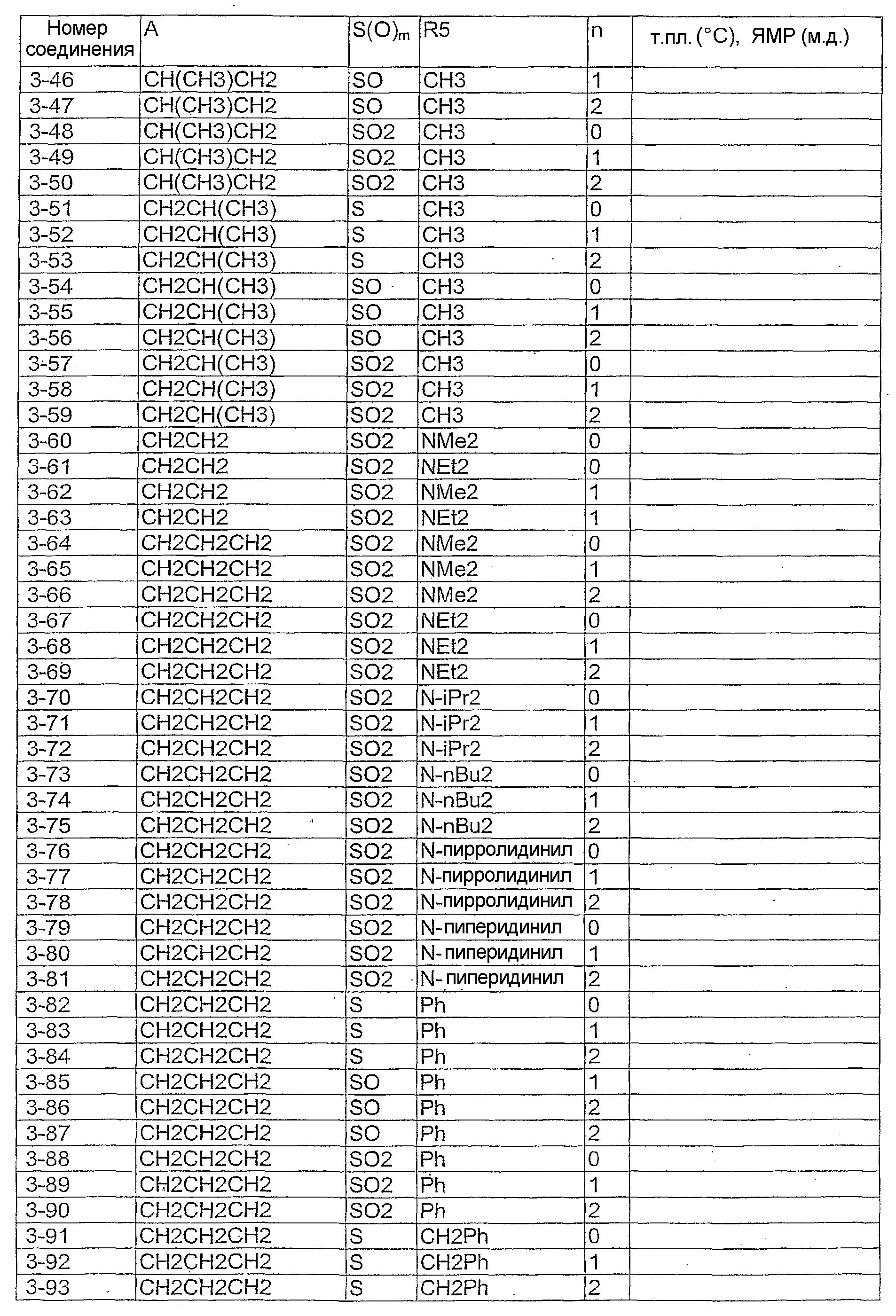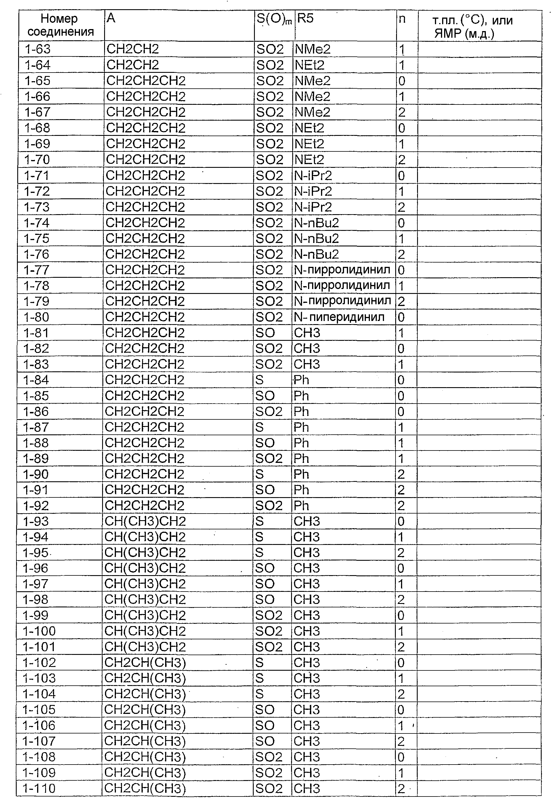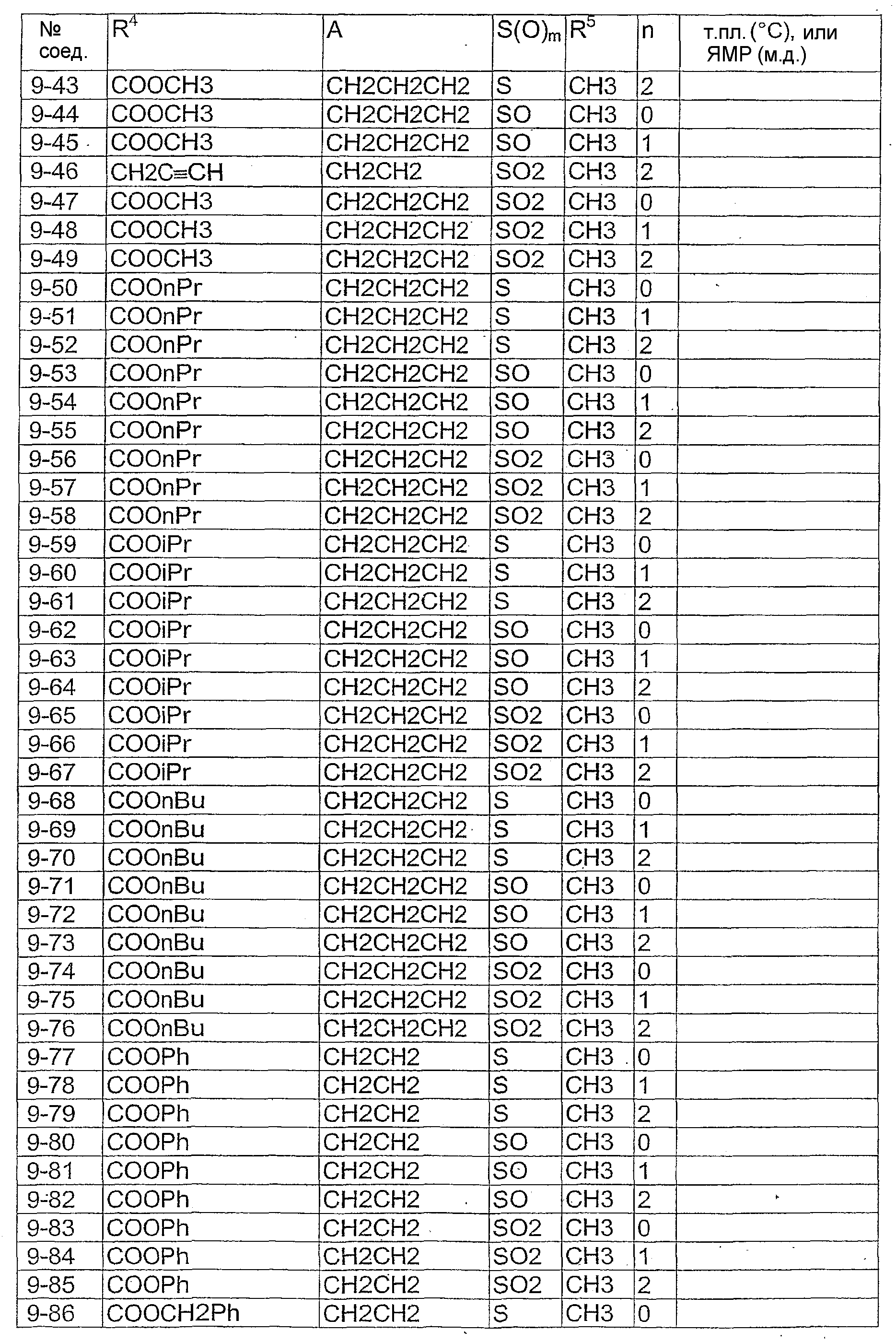 где R5 является таким, как определено выше, за исключением водорода. Эта реакция может проводиться в присутствии или в отсутствие основания, такого как карбонат щелочного металла, например, карбонат калия, в растворителе, таком как диоксан, тетрагидрофуран или N,N-диметилформамид, при температуре от 0 до 100°С (предпочтительно, 0-50°С ). Могут быть использованы различные формы формальдегида, например параформальдегид, когда в реакционной смеси может также присутствовать вода. Согласно следующему частному случаю данного изобретения соединения формулы (I), где R1, R2, R3, R4, R6, А, W и n являются такими, как определено выше, R5 является таким, как определено выше, за исключением водорода, и m равно 0, могут быть получены взаимодействием соединения формулы (Х): где R1, R2, R3, R4, А, W и n являются такими, как определено выше, с соединением формулы (XI): R5-L3 (XI) где R5 является таким, как определено выше, за исключением водорода, и L3 обозначает удаляемую группу, обычно галоген, например, хлор, или алкилсульфонильную группу. Эту реакцию обычно проводят с использованием соли щелочного металла, например, соли натрия, соединения формулы (Х), в инертном растворителе, таком как тетрагидрофуран, при температуре от 0 до 60°С. Согласно следующему частному случаю данного изобретения соединения формулы (I), где R1, R2, R3, R4, R5, R6, А, W и n являются такими, как определено выше, и m равно 0, могут быть также получены взаимодействием соединения формулы (XII): где R1, R2, R3, R4, А, W и n являются такими, как определено выше, и L4 обозначает удаляемую группу, обычно галоген, например, хлор, или алкилсульфонильную группу, с соединением формулы (IX), как определено выше. Эту реакцию обычно проводят в присутствии основания, например, гидрида щелочного металла, такого как гидрид натрия, или алкоксида щелочного металла, такого как трет-бутоксид калия, в инертном растворителе, таком как тетрагидрофуран, при температуре от 0 до 60°С, или карбоната щелочного металла, такого как карбонат калия, в инертном растворителе, таком как ацетон, при температуре от 0°С до температуры дефлегмации растворителя. Согласно следующему частному случаю данного изобретения соединения формулы (I), где R1, R2, R3, R4, R6, W, m и n являются такими, как определено выше, R5 является таким, как определено выше, за исключением водорода, и А обозначает (С2-С12)-алкилен, двухуглеродная цепь которого связывает R5S(O)m– и -NR4-группы, могут быть также получены взаимодействием соединения формулы (VI), приведенного выше, где R1, R2, R3, R4, R6, W и n являются такими, как определено выше, с соединением формулы (XIII): где R5 и m являются такими, как определено выше, и А1 обозначает (С2-С12)-алкенильную группу, в которой двойная связь является смежной с группой R5S(O)m. Эту реакцию обычно проводят в органическом растворителе при температуре от 0 до 200°С (предпочтительно, 0-100°С). Согласно следующему частному случаю данного изобретения, соединения формулы (I), где R1, R2, R3, R4, R6, А, W и n являются такими, как определено выше, R5 обозначает водород и m равно 0, могут быть получены взаимодействием соответствующего соединения формулы (XII), как определено выше, с соединением формулы (XIV): где Ra обозначает (С1-С6)-алкил, с получением соединения формулы (XV): где различные символы являются такими, как определено выше. Эту реакцию обычно проводят в присутствии основания, такого как гидрид щелочного металла, например, гидрид
