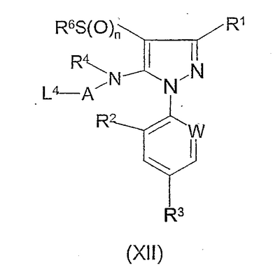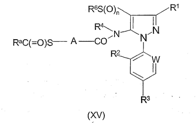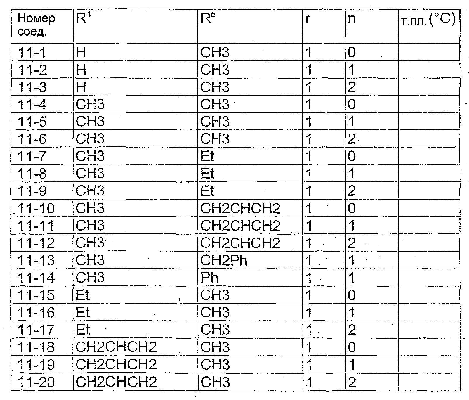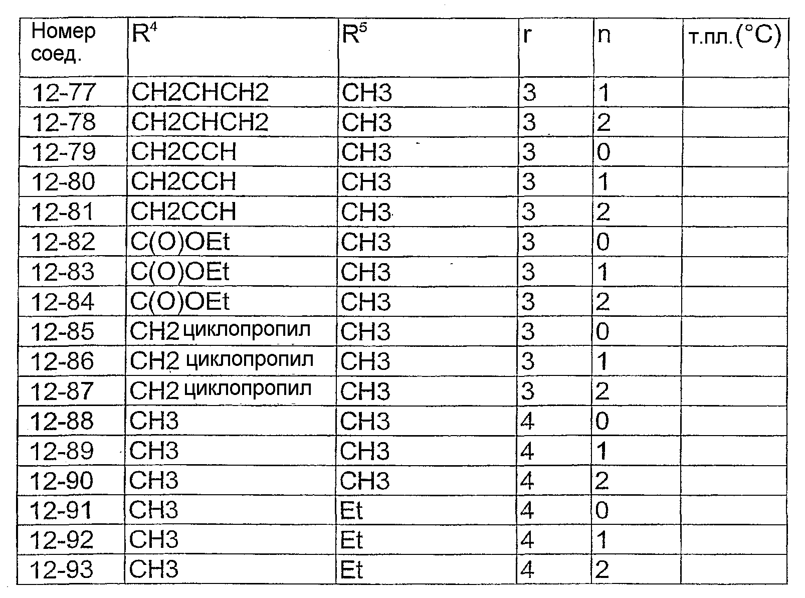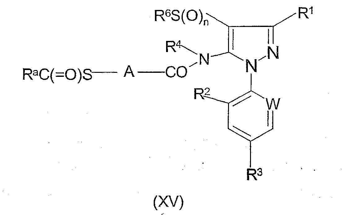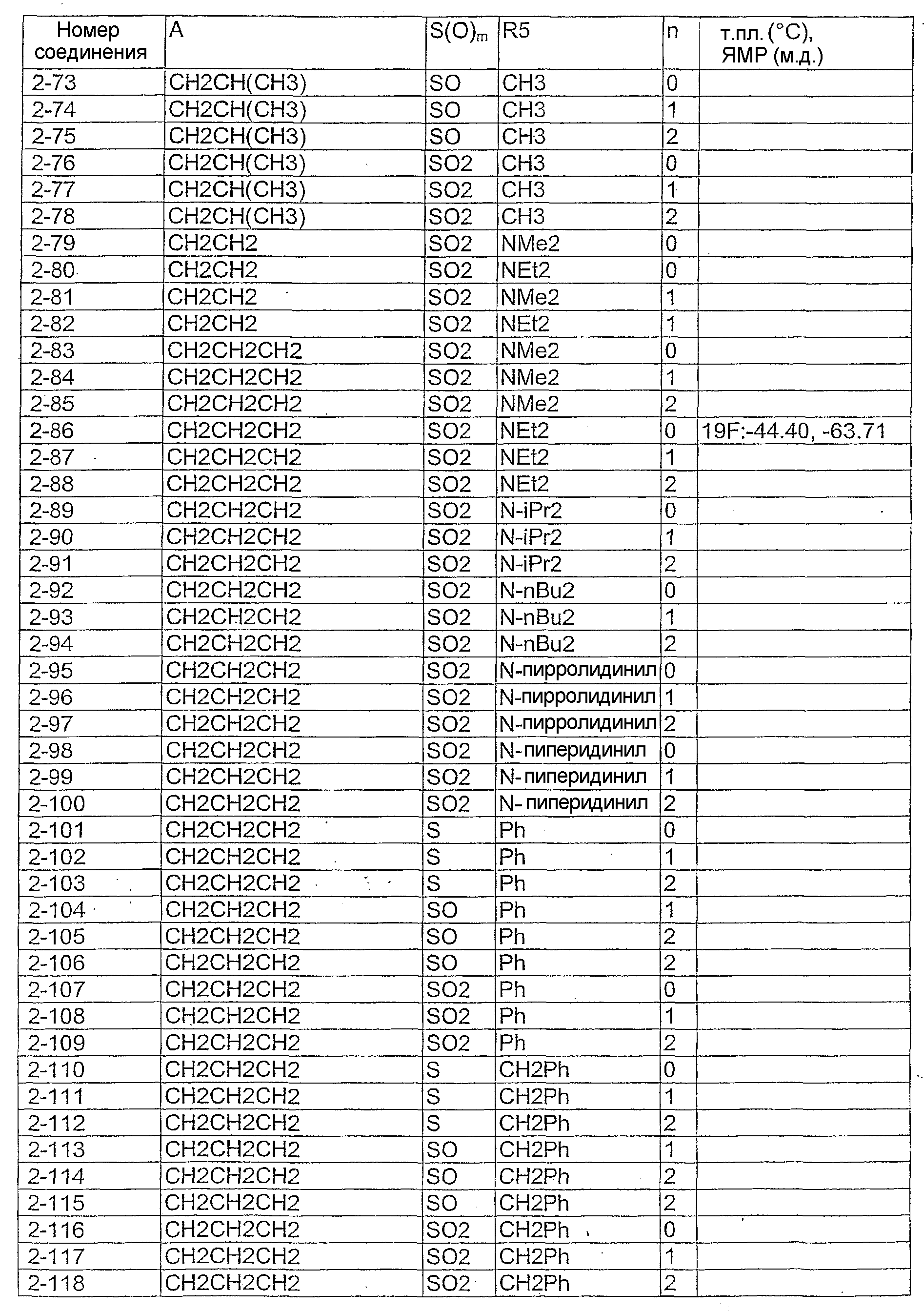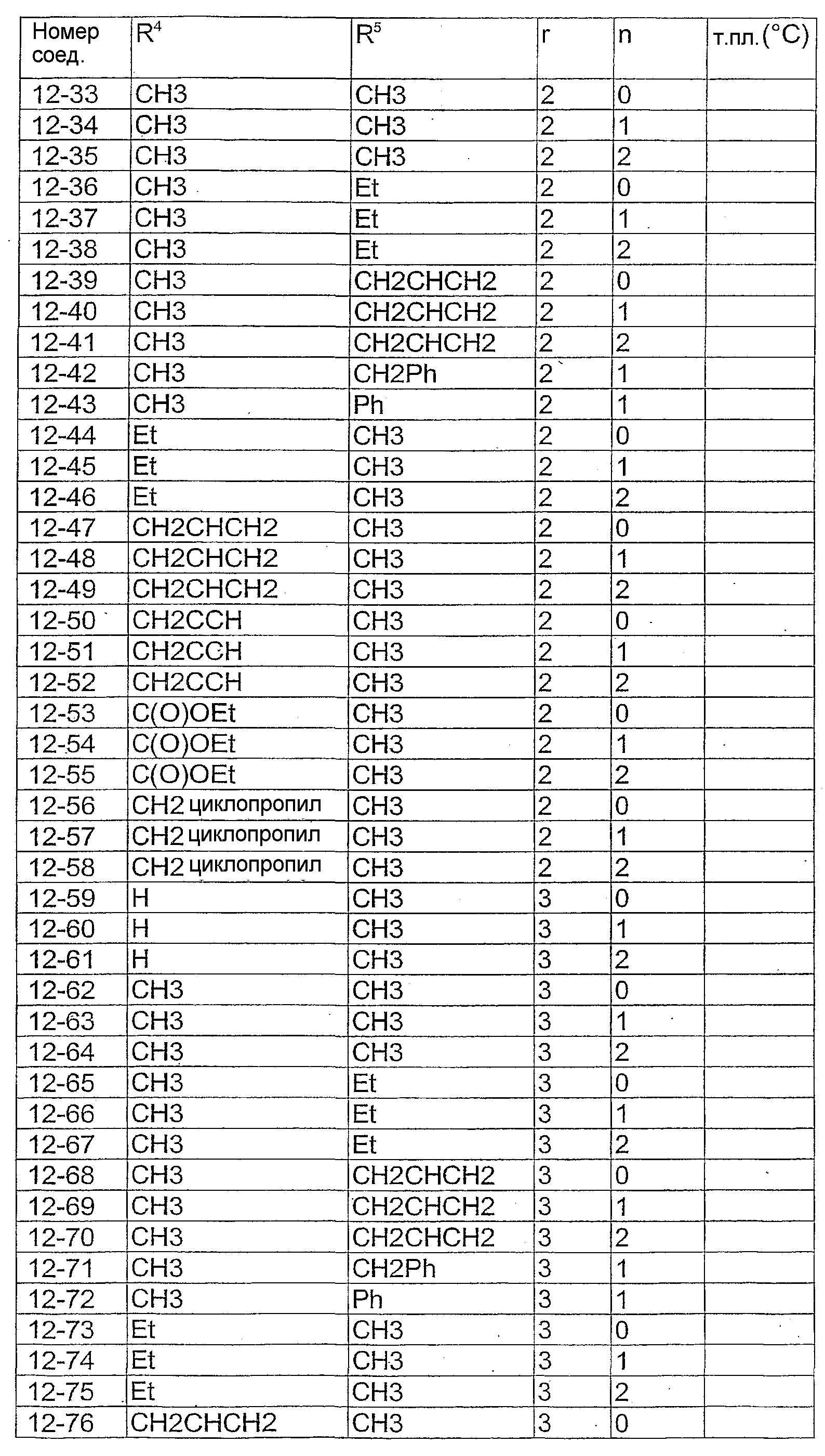 где R5 является таким, как определено выше, за исключением водорода. Эта реакция может проводиться в присутствии или в отсутствие основания, такого как карбонат щелочного металла, например, карбонат калия, в растворителе, таком как диоксан, тетрагидрофуран или N,N-диметилформамид, при температуре от 0 до 100°С (предпочтительно, 0-50°С ). Могут быть использованы различные формы формальдегида, например параформальдегид, когда в реакционной смеси может также присутствовать вода. Согласно следующему частному случаю данного изобретения соединения формулы (I), где R1, R2, R3, R4, R6, А, W и n являются такими, как определено выше, R5 является таким, как определено выше, за исключением водорода, и m равно 0, могут быть получены взаимодействием соединения формулы (Х): где R1, R2, R3, R4, А, W и n являются такими, как определено выше, с соединением формулы (XI): R5-L3 (XI) где R5 является таким, как определено выше, за исключением водорода, и L3 обозначает удаляемую группу, обычно галоген, например, хлор, или алкилсульфонильную группу. Эту реакцию обычно проводят с использованием соли щелочного металла, например, соли натрия, соединения формулы (Х), в инертном растворителе, таком как тетрагидрофуран, при температуре от 0 до 60°С. Согласно следующему частному случаю данного изобретения соединения формулы (I), где R1, R2, R3, R4, R5, R6, А, W и n являются такими, как определено выше, и m равно 0, могут быть также получены взаимодействием соединения формулы (XII): где R1, R2, R3, R4, А, W и n являются такими, как определено выше, и L4 обозначает удаляемую группу, обычно галоген, например, хлор, или алкилсульфонильную группу, с соединением формулы (IX), как определено выше. Эту реакцию обычно проводят в присутствии основания, например, гидрида щелочного металла, такого как гидрид натрия, или алкоксида щелочного металла, такого как трет-бутоксид калия, в инертном растворителе, таком как тетрагидрофуран, при температуре от 0 до 60°С, или карбоната щелочного металла, такого как карбонат калия, в инертном растворителе, таком как ацетон, при температуре от 0°С до температуры дефлегмации растворителя. Согласно следующему частному случаю данного изобретения соединения формулы (I), где R1, R2, R3, R4, R6, W, m и n являются такими, как определено выше, R5 является таким, как определено выше, за исключением водорода, и А обозначает (С2-С12)-алкилен, двухуглеродная цепь которого связывает R5S(O)m– и -NR4-группы, могут быть также получены взаимодействием соединения формулы (VI), приведенного выше, где R1, R2, R3, R4, R6, W и n являются такими, как определено выше, с соединением формулы (XIII): где R5 и m являются такими, как определено выше, и А1 обозначает (С2-С12)-алкенильную группу, в которой двойная связь является смежной с группой R5S(O)m. Эту реакцию обычно проводят в органическом растворителе при температуре от 0 до 200°С (предпочтительно, 0-100°С). Согласно следующему частному случаю данного изобретения, соединения формулы (I), где R1, R2, R3, R4, R6, А, W и n являются такими, как определено выше, R5 обозначает водород и m равно 0, могут быть получены взаимодействием соответствующего соединения формулы (XII), как определено выше, с соединением формулы (XIV): где Ra обозначает (С1-С6)-алкил, с получением соединения формулы (XV): где различные символы являются такими, как определено выше. Эту реакцию обычно проводят в присутствии основания, такого как гидрид щелочного металла, например, гидрид