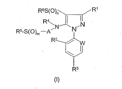 где R1 обозначает CN; W обозначает С-галоген; R2 обозначает галоген; R3 обозначает (С1-С3)-галогеналкил, (C1-C3)-галогеналкокси; R4 обозначает водород, (С2-С6)-алкенил, (С2-С6)-алкинил, (С3-С7)-циклоалкил, COR8, CO-(CH2)q-R9, -СО-(С1-С4)-алкил-(С1-С6)-алкокси, -СО2-(CH2)q-R7, CO2R8, -CH2R7, OR8; или (С1-С6)-алкил, замещенный одним радикалом, выбранным из группы, состоящей из галогена, (С1-С6)-алкокси, (С3-С7)-циклоалкила; А обозначает (С1-С12)-алкилен; R5 обозначает Н, (С3-С6)-алкенил, -(CH2)qR7 или NR10R11, при условии, что для последнего упомянутого радикала m равно 2; или обозначает (C1-С6)-алкил, незамещенный; или, когда А обозначает (С1-С12)-алкилен и R5 обозначает (С1-С6)-алкил, незамещенный или замещенный одним или несколькими радикалами-галогенами, один или несколько из атомов углерода R5 могут, вместе с S(O)m и одним или несколькими атомами углерода А, образовывать тетрагидротиенил; R6 обозначает (С1-С6)-галогеналкил; R7 обозначает фенил, незамещенный или замещенный (С1-С6)-алкокси; R8 обозначает (С1-С6)-алкил; R9 обозначает незамещенный тетрагидрофуранил; R10 обозначает (С1-С6)-алкил; R11 обозначает (С1-С6)-алкил; m, n и р, каждый независимо, равны 0, 1 или 2; q равно 0 или 1; или их пестицидно приемлемые соли. 5. Производные 5-замещенных алкиламинопиразолов формулы (I) по п.4, где R1 обозначает CN; W обозначает С-галоген; R2 обозначает галоген; R3 обозначает (С1-С3)-галогеналкил, (С1-С3)-галогеналкокси; R4 обозначает водород, (С1-С6)-алкил или COR8; А обозначает (С1-С12)-алкилен; R5 обозначает Н, (С3-С6)-алкенил, -(CH2)qR7 или NR10R11, при условии, что для последнего упомянутого радикала S(O)m обозначает SO2; или обозначает (С1-С6)-алкил, незамещенный; или, когда А обозначает (C1-C12)-алкилен и R5 обозначает (С1-С6)-алкил, замещенный одним или несколькими радикалами-галогенами, один или несколько из атомов углерода R5 могут, вместе с S(O)m и одним или несколькими атомами углерода А, образовывать тетрагидротиенил; R6 обозначает (С1-С6)-галогеналкил; R7 обозначает фенил, незамещенный или замещенный (С1-С6)-алкокси; R8 обозначает (С1-С6)-алкил; R9 обозначает незамещенный тетрагидрофуранил; R10 обозначает (С1-С6)-алкил; R11 обозначает (С1-С6)-алкил; m и n, каждый, независимо, равны 0, 1 или 2; q равно 0 или 1. 6. Производные 5-замещенных алкиламинопиразолов формулы (I) по п.4, где R1 обозначает CN; R2 обозначает хлор; R3 обозначает CF3 или OCF3; W обозначает С-Cl; R4 обозначает водород или (С1-С6)-алкил; R5 обозначает (С1-С6)-алкил; R6 обозначает CF3; А обозначает (С2-С3)-алкилен и m и n, каждый, независимо, равны 0, 1 или 2, или их пестицидно приемлемые соли. 7. Применение соединений формулы (I) и их пестицидно приемлемых солей по любому из пп.4-6 для уничтожения паразитов в организме животного и на теле животного. 8. Применение соединений формулы (I) и их пестицидно приемлемых солей по любому из пп.4-6 для приготовления ветеринарного лекарственного средства. 9. Пестицидная композиция для применения против членистоногих, содержащая соединение формулы (I) или его пестицидно приемлемую соль, определенное в любом из пп.4-6, вместе с пестицидно приемлемым разбавителем или носителем и/или поверхностно-активным агентом.
