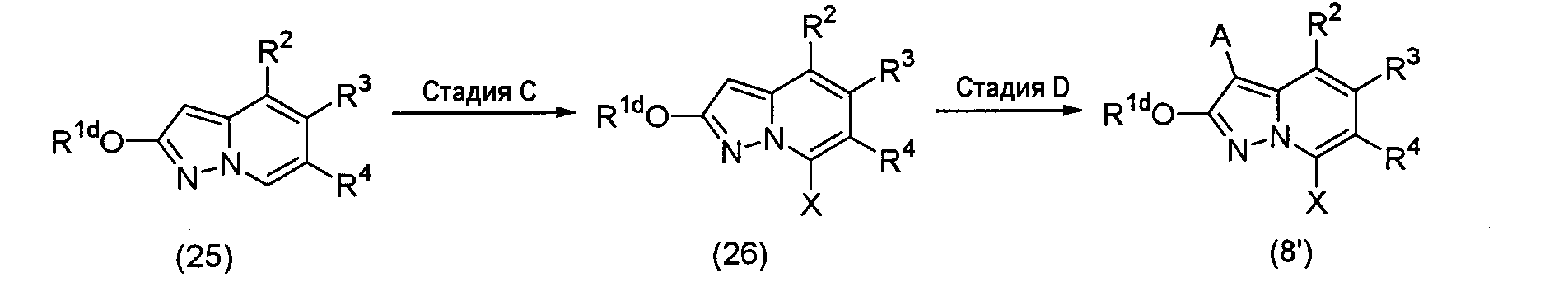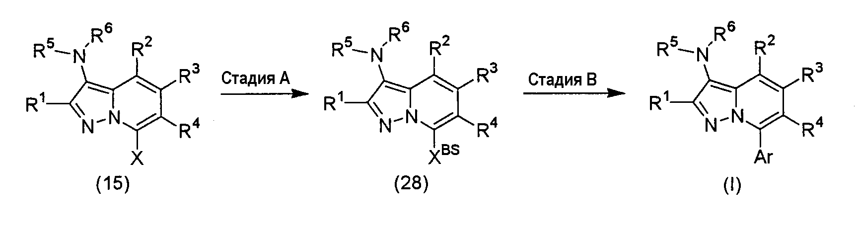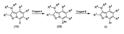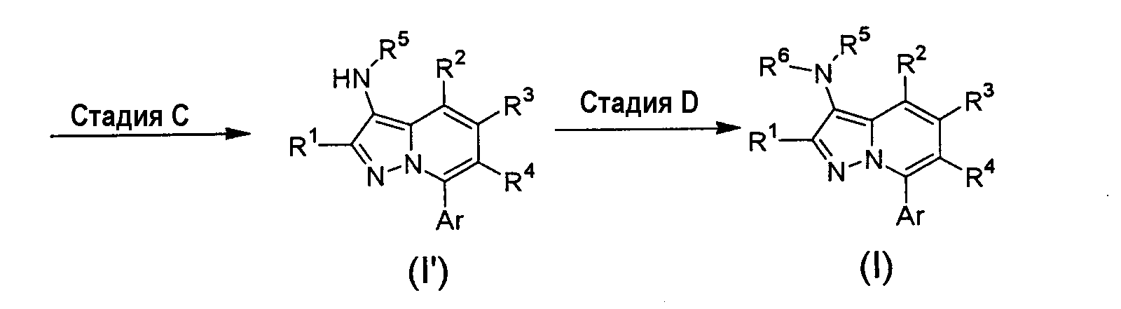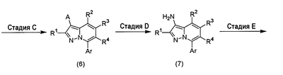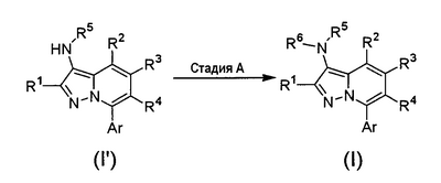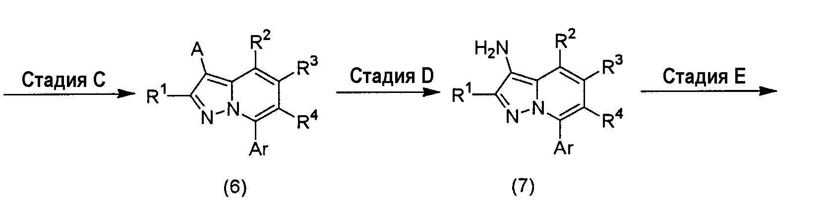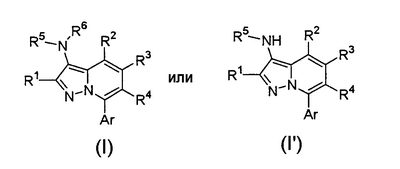 Промышленная применимость Как было сказано выше, в соответствии с настоящим изобретением предлагаются новые производные пиразоло[1,5-a]пиридина, обладающие антагонистической активностью в отношении рецепторов CRF, их соли и содержащие их новые фармацевтические композиции. Соединения по настоящему изобретению или их соли обладают сильным антагонизмом к рецепторам CRF и особенно к рецептору CRF1, проявляя при этом низкую токсичность и высокую безопасность, и, следовательно, они очень полезны в качестве лекарственных средств. Соединения по настоящему изобретению и содержащие их фармацевтические композиции полезны для лечения или профилактики заболеваний, связанных с CRF и/или рецепторами CRF, и, в частности, они полезны в качестве средств для лечения или профилактики депрессии и депрессивных симптомов (тяжелая депрессия, эпизодическая депрессия, рецидивирующая депрессия, вызванное депрессией плохое обращение с детьми, послеродовая депрессия и т.д.), мании, страха, расстройства генерализованной тревоги, панического расстройства, фобии, навязчиво-компульсивного расстройства, посттравматического стрессового расстройства, болезни Туретта, аутизма, аффективного расстройства, дистимии, биполярного расстройства, неустойчивой личности, шизофрении, пептической язвы, синдрома раздраженной толстой кишки, язвенного колита, болезни Крона, диареи, запора, послеоперационной непроходимости кишечника, вызванных стрессом желудочно-кишечных расстройств, нервной рвоты и подобного.