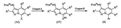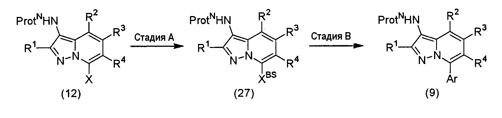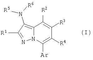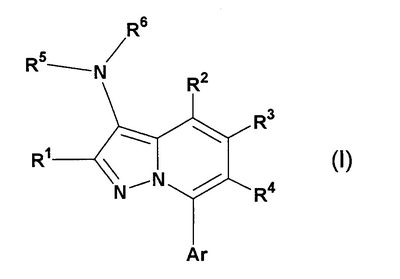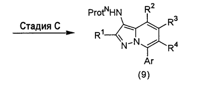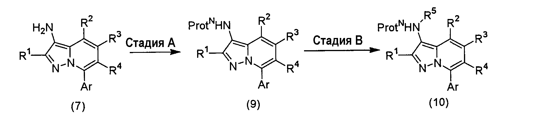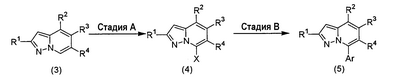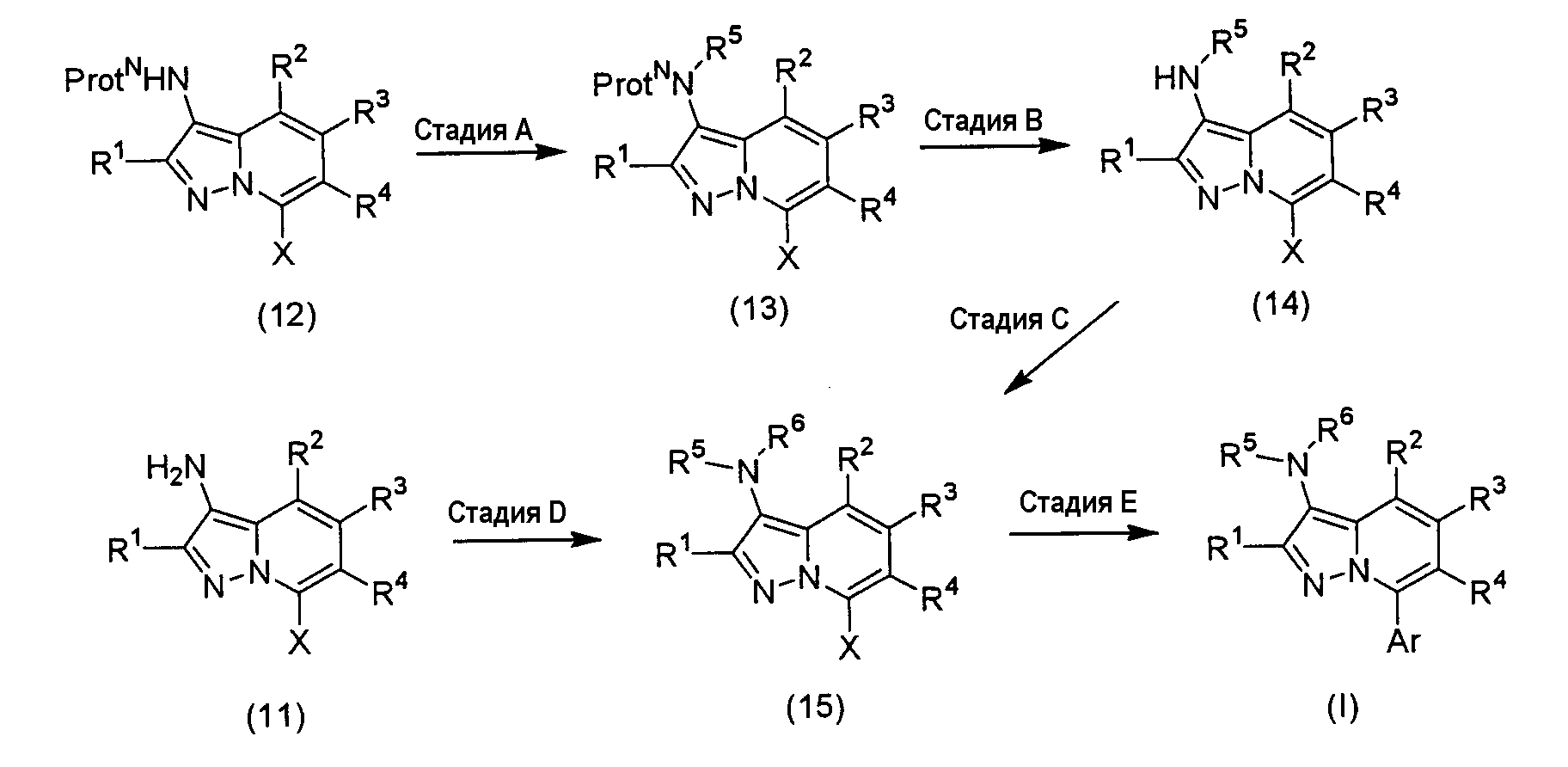 Промышленная применимость Как было сказано выше, в соответствии с настоящим изобретением предлагаются новые производные пиразоло[1,5-a]пиридина, обладающие антагонистической активностью в отношении рецепторов CRF, их соли и содержащие их новые фармацевтические композиции. Соединения по настоящему изобретению или их соли обладают сильным антагонизмом к рецепторам CRF и особенно к рецептору CRF1, проявляя при этом низкую токсичность и высокую безопасность, и, следовательно, они очень полезны в качестве лекарственных средств. Соединения по настоящему изобретению и содержащие их фармацевтические композиции полезны для лечения или профилактики заболеваний, связанных с CRF и/или рецепторами CRF, и, в частности, они полезны в качестве средств для лечения или профилактики депрессии и депрессивных симптомов (тяжелая депрессия, эпизодическая депрессия, рецидивирующая депрессия, вызванное депрессией плохое обращение с детьми, послеродовая депрессия и т.д.), мании, страха, расстройства генерализованной тревоги, панического расстройства, фобии, навязчиво-компульсивного расстройства, посттравматического стрессового расстройства, болезни Туретта, аутизма, аффективного расстройства, дистимии, биполярного расстройства, неустойчивой личности, шизофрении, пептической язвы, синдрома раздраженной толстой кишки, язвенного колита, болезни Крона, диареи, запора, послеоперационной непроходимости кишечника, вызванных стрессом желудочно-кишечных расстройств, нервной рвоты и подобного.