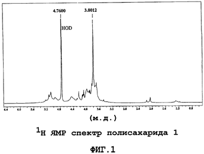 Полисахарид имеет среднюю молекулярную массу 1,3×105 Да (s=5365) c 1Н-ЯМР, 13С-ЯМР спектры и профиль гельпроникающей хроматографии (GPC), как показано на фиг.1-3 соответственно.