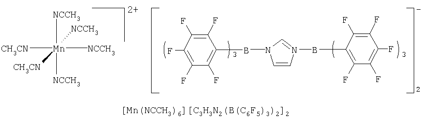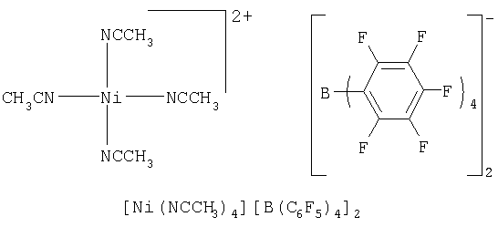 в которой М означает металл из 3-12 групп Периодической системы элементов, R1 означает алкильный остаток с 1-8 атомами углерода и А означает слабокоординированный анион. В качестве способных сополимеризоваться с изобутеном мономеров способ согласно изобретению предусматривает использование, например, изопрена и/или стирола. Способом согласно изобретению предпочтительно получают сополимеры на основе изобутена и изопрена, обладающие молекулярной массой от 2000 до 7000 Да и содержащие до 60% встроенных мономерных звеньев изопрена (согласно данным ЯМР-спектроскопии). Содержание концевых винилиденовых групп в высокоактивных полиизобутенах, полученных способом согласно изобретению, предпочтительно составляет от 95 до 100% мол., а среднечисленная молекулярная масса находится в интервале от 2000 до 7000 Да. Полиизобутены согласно изобретению растворимы во многих органических растворителях, в частности хлороформе, дихлорметане, гексане, гептане, циклогексане, толуоле или бензоле, или в смесях этих растворителей. Способ согласно изобретению предпочтительно осуществляют в инертном органическом растворителе, причем используют галогенированные и негалогенированные углеводороды, которые, при необходимости, могут быть замещены нитрогруппами, или смеси таких растворителей. Предпочтительными растворителями являются, например, дихлорметан, хлороформ, дихлорэтан, тетрахлорэтан, гексан или пентан, циклоалканы, в частности, циклогексан, а также ароматические углеводороды, в частности, толуол и бензол. Наиболее предпочтительное количество растворителя может быть установлено в соответствующих предварительных экспериментах. Предпочтительная концентрация используемых мономеров в указанных растворителях находится в интервале от 0,01 до 10 моль/л, особенно предпочтительная концентрация составляет от 0,1 до 2 моль/л. В предпочтительно используемых катализаторах на основе переходного металла приведенной выше формулы М означает марганец, никель, хром или цинк, А означает анионы формул BF4 –, SbX6 –, РХ6 – и/или B(Ar)4 –, a также анионы В(Ar)4 –, соединенные мостиковыми циклическими группами, причем Ar означает фенил, который может быть замещен 1-5 заместителями, в частности фтором, хлором или CF3. Циклическими группами, соединяющими анионы В(Ar)4 –, предпочтительно являются имидазольные мостики. Заместитель R1 в приведенной выше общей формуле предпочтительно является алкильным остатком с 1-4 атомами углерода, в частности метилом, этилом, пропилом, бутилом, изопропилом, изобутилом или третбутилом. Особенно предпочтительным является использование следующих катализаторов на основе переходного металла В способе согласно изобретению мольное отношение катализаторов на основе переходного металла к используемым мономерам находится в интервале от 1:15.000.000 до 1:10, предпочтительно от 1:500.000 до 1:10.000. Концентрация используемых катализаторов в реакционной смеси составляет от 0,01 до 10 ммоль/л, предпочтительно от 0,1 до 2 ммоль/л. Полимеризацию согласно изобретению осуществляют в температурном интервале от 0 до 100°С, предпочтительно от 20 до 60°С. Используемые согласно изобретению катализаторы на основе переходного металла известны и могут быть получены известными способами, например, описанными в следующих литературных источниках: – Wayne E. Buschmann, Joel S. Miller, Chem. Eur. J. 1998, 4(9), 1731-1737. 