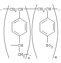 где R5=Н, СН3. Обработку аминосоединениями продукта взаимодействия гидроксильного производного пропана с монохлоруксусной кислотой ведут при температуре 60-90°С. В случае, когда для обработки продукта взаимодействия гидроксильного производного пропана с монохлоруксусной кислотой используют аминосоединения алифатического ряда, выдерживаются мольные соотношения реагентов – гидроксильное производное пропана:монохлоруксусная кислота:алифатические амины=1:3,0-3,2:2,0-3,1 соответственно. В случае, когда для обработки продукта взаимодействия производного пропана с монохлоруксусной кислотой используют гетероциклические аминосоединения пиридинового ряда, выдерживаются мольные соотношения реагентов – гидроксильное производное пропана:монохлоруксусная кислота: пиридины=1:3,0-3,2:3,0-3,1 соответственно. В случае, когда для обработки продукта взаимодействия гидроксильного производного пропана с монохлоруксусной кислотой используют смеси гетероциклических аминосоединений – морфолина и пиридина, выдерживаются мольные соотношения реагентов – гидроксильное производное пропана:монохлоруксусная кислота:морфолин:пиридин=1:3,0-3,2:1,0-2,1:1,0-2,1 соответственно, при этом суммарное количество морфолина и пиридина составляет 3,0-3,2 моля. В качестве исходных 1,2,3-трис[гидроксиполи(алкиленокси)] пропанов, наряду с индивидуальными соединениями, можно использовать выпускаемые нефтехимической промышленностью различные оксиэтилированные и/или оксипропилированные глицерины, в том числе: Лапрол 3003 (ТУ 2226-022-10488057-95) с общей степенью оксипропилирования, равной 49-55, и общей степенью оксиэтилирования, равной 0; Лапрол 3603-2-12 (ТУ 2226-015-10488057-94) с общей степенью оксипропилирования, равной 49-55, и общей степенью оксиэтилирования, равной 9-10; Лапрол 5003-2-15 (ТУ 2226-006-10488057-94) с общей степенью оксипропилирования, равной 66-76, и общей степенью оксиэтилирования, равной 15-18. Монохлоруксусная кислота используется в виде индивидуального соединения или технического продукта по ТУ 2431-288-05763441-99. В качестве кислотного катализатора используют Н+ – форму катионообменной смолы КУ-2-8, которая представляет собой твердые, ограничено набухающие высокомолекулярные полисульфокислоты сополимера стирола с дивинилбензолом, общей формулы: