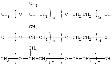 а+с+е=общая степень оксипропилирования, равная 55; b+d+f=общая степень оксиэтилирования, равная 10;