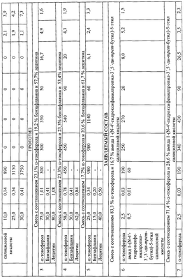 Диапазоны изменения концентрации каждого из компонентов, составляющих в целом наиболее высокоэффективные смеси, представлены следующими значениями, масса в %: