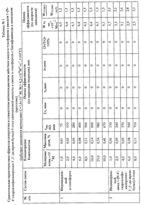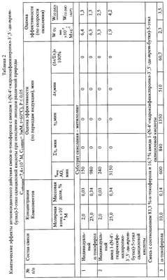 Эффективность ингибирующего действия смесей указанных выше веществ оценивали на основании данных кинетики поглощения кислорода, получаемых с использованием манометрического метода, подробно изложенного в описании изобретения.