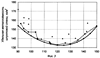 Для решения задачи оптимизации конструкции шпунтовой стены и сокращения ее удельной металлоемкости при сохранении ее несущей способности были проведены исследования, результаты которых, приведенные в таблице 2, позволили выявить зависимость удельной металлоемкости шпунтовой стены рассматриваемой конструкции от параметров формы профилей ее вертикальных элементов 1 и 2, о чем свидетельствуют графики, показанные на фиг.2 и фиг.3, и на основе последних определить области соответствия параметров формы профилей ее вертикальных элементов 1 и 2: отношения площади полки 3 к площади стенки 5 и угла между полкой 3 и стенкой 5.