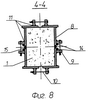 на фиг.4 изображен усиленный по предлагаемому способу сжатый железобетонный элемент с установленными натяжными обоймами и закрепленными напряженными распорками усиления: