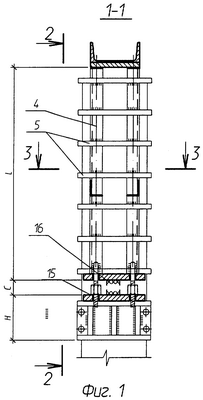 14. Способ по п.1, отличающийся тем, что при местном повреждении колонны усиление распространяют и на неповрежденные части на длину не менее 500 мм и не менее 5-кратной толщины бетона усиления или двойной ширины большей грани восстанавливаемой колонны.