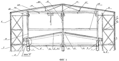 На фиг.1 изображено реконструируемое здание, поперечный разрез.