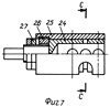 Устройство управления пневмостойкой в заявленном станке существенно отличается от ближайшего аналога станка “Rambor”. У станка “Rambor” управление пневмостойкой осуществляется посредством управляющего клапана и клапана быстрого сброса, но такая система обладает существенным недостатком, который заключается в частых отказах срабатывания клапана быстрого сброса при бурении под углами к вертикали. В заявленном станке управление пневмостойкой происходит переключением положения специального трехходового вентиля, состоящего из втулки 24, ротора 25 и крепежных гаек 26 и 27.
