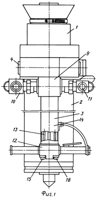 Станок состоит из пневматической силовой головки 1, привинченной к внешнему цилиндру телескопической пневмостойки 2, и рукояти управления 3, шарнирно связанной с силовой головкой 1 посредством оси 4 пневмораспределителя.