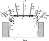 По окончании закрепления анкеров 21 и 22 в наклонных шпурах 19 и 20 устанавливают две стойки 4 и соединяют их с угловыми звеньями 5 с помощью скоб 6 с гайками 7 и планками 8, ранее присоединенными к верхняку 3.
