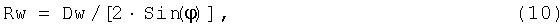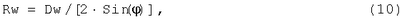 4.2) Рабочую коническую поверхность конического ролика снабжают бобиной, радиус которой рассчитывают исходя из действующих контактных напряжений или исходя из приведенной нагрузки, действующей на ПК в размере от одной десятой до одной третьей части его динамической грузоподъемности, или устанавливают равной (0,00004…0,00012)·Dw, но не менее 0,5 мкм для того, чтобы увеличить способность к восприятию и более равномерному распределению нагрузок по площадкам контакта между коническими роликами и дорожками качения колец ПК. При наличии сведений о нагрузках радиус бобины рассчитывают по известным формулам исходя из контактных напряжений, при отсутствии сведений о нагрузках исходят из условий проектирования, задаваясь определенной величиной приведенной нагрузки, действующей на ПК. Например, приведенную нагрузку принимают равной для ПК, работающих в легких условиях нагружения, от одной десятой до одной пятой, для ПК, работающих в нормальных (средних) условиях нагружения, от одной пятой до одной четвертой, для ПК, работающих в тяжелых условиях нагружения, от одной четвертой до одной третей части их динамической грузоподъемности соответственно. При этом выполнение и контроль бобины размером менее 0,5 мкм затруднительно.