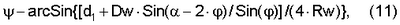 4.1) Значения угла контакта, диаметра и длины конического ролика принимают из расчета примерного равенства наименьших толщин стенок наружного и внутреннего колец, которые рассчитывают по формулам 16 и 17 для того, чтобы обеспечить примерную равнопрочность колец ПК и определить оптимальный угол контакта при отсутствии или независимо от наличия сведений о нагрузках. Угол контакта принимает вполне определенное значение, так как половина угла конуса ролика нормализована и выбирается из ряда 15′, 22’30”, 30′, 45′, 1°, 1°15′, 1°30′, 1°45′, 2°, 2°30′, 3°, 3°30′, 4°, 4°30′, а диаметр и длина конического ролика зависят от габаритных размеров ПК и не могут изменяться в больших пределах.