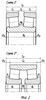На Фиг.1 представлен роликовый конический ПК в разрезе с элементами, скомплектованный по схеме 1 с компоновкой для однорядного ПК. На Фиг.2 представлены два роликовых конических ПК в разрезе с элементами, скомплектованных по схемам 2′ и 2” с компоновкой для двухрядных ПК. На Фиг.3 представлены два роликовых конических ПК в разрезе с элементами, скомплектованных по схемам 4′ и 4” с компоновкой для четырехрядных ПК.