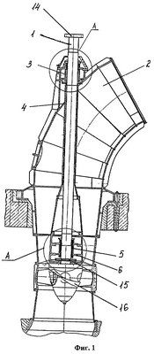 В процессе эксплуатации насоса периодически необходима профилактика или замена отработавшего свой ресурс подшипника. Это может быть как штатный подшипник скольжения, установленный при сборке насоса в производственных условиях, так и подшипник качения. Учитывая, что вертикальный вал 1 насоса с обоих торцов закрыт несъемными фланцами: сверху – фланцем 14, снизу – фланцем 15, а на нижнем конце вала 1 помещено еще и рабочее колесо 16 насоса, снять подшипник через торцы вала не представляется возможным.
