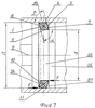 На фиг.7 изображено заявляемое кольцо уплотнительное упругодеформируемое, например резиновое. Указаны позиции – кольцо 1, его ось 2, которая совпадает с осью уплотняемой пары типа цилиндр-поршень, параллельные стороны 4 и 5, а также 6 и 7, углы и , причем они равны в данном случае, конус 3 сечения кольца, внутренний d и внешний D диаметры кольца, а также указана пара сил F. Сечение стенки кольца 1 расположено под углом 90° – к опорной стенке 24 канавки 25 поршня 26. Давление среды поступает в канавку 25 со стороны ее торца 27. Под действием давления уплотняемой среды образуется вращающий момент, т.е. пара сил F, приложенных к плечу. Размер плеча равен D-d/2, где – D – наружный диаметр кольца, a d – внутренний диаметр кольца (фиг. 7).