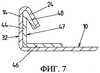 Длины обеих полок 44 и 46 могут в зависимости от назначения и требований прочности выбираться довольно свободно. Это относится также к профилю соответствующего формуемого соединительного фланца. Так, например, в форме исполнения согласно фиг.6 отстоящая наружу полка 44 усилительного кольца имеет такую длину, что она полностью прилегает к наружной стороне кольцевой закраины 14, а прижимная полка 24 соединительного фланца плотно изогнута вокруг наружного конца полки 44. Предусмотренная согласно фиг.1 дополнительная опорная полка 28 отсутствует в формах исполнения согласно фиг.4-7.