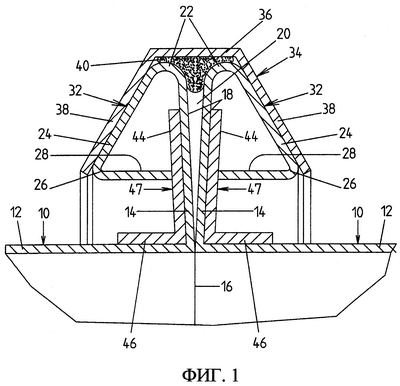 Несколько более тяжелой и соответственно более прочной является форма исполнения согласно фиг.12, в которой толщина листового металла усилительного кольца 47 выбрана несколько большей. Однако поэтому усилительное кольцо включает только отстоящую наружу полку 44 и не включает отогнутую назад полку 48.