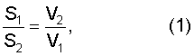 Соотношение скоростей витания в нижней и верхней камерах и соотношение площадей сечения этих камер выражается следующей формулой: