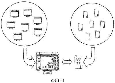 Фиг.1 иллюстрирует главные компоненты детонаторной системы в соответствии с изобретением. Система содержит переносное рабочее устройство и такой блок управления, как, например, взрывная машинка. Блок управления соединен с несколькими детонаторами, которые совместно образуют комплект. Рабочее устройство передает команды или рабочие данные в блок управления, который в свою очередь управляет детонаторами в комплекте и детонирует их. Система описывается со ссылкой на фиг.1, блок управления, который обычно является взрывной машинкой, и рабочее устройство оба имеют средства беспроводной связи, с помощью которых они осуществляют сообщение друг с другом, направляя и принимая сигналы, например радиосигналы. Взрывная машинка и рабочее устройство также имеют аккумуляторные батареи, подающие ток в каждое устройство. Взрывная машинка осуществляет взрывание комплекта. Для этого она соединена с комплектом.