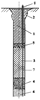 На чертеже схематично изображена комбинированная засыпная забойка в рабочем положении в скважине.