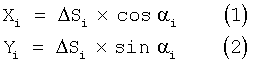Разложение отрезков пути Si на составляющие проводится в прямоугольной системе координат, оси которой параллельны линиям сетки топографической карты.
