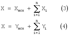 и последующем алгебраическом суммировании этих составляющих с исходными координатами Хисх и Yисх