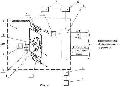 – в качестве преобразователя информации и управления применена микроЭВМ, установленная в корпусе гирокурсоизмерителя, с подключением к соответствующим входам микроЭВМ выходов АЦПВТ и формирователя импульсов датчика пути;