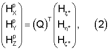 * – проекции вектора кинетического момента НГ на оси инерциальной системы координат, вычисляемые путем численного интегрирования уравнения прецессионного движения НГ, Q – матрица углового перехода от системы координат XYZ к инерциальной системе координат, формируемая на основании текущих значений широты и долготы места, а также углов качки и курса объекта, поступающих от внешних источников навигационной информации.