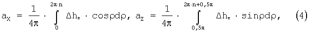 «Измеренное» значение угла hu содержит составляющие, обусловленные видимым движением вектора кинетического момента НГ относительно Земли вследствие земного вращения и систематического ухода гироскопа, а также гармонические составляющие, вследствие конического движения корпуса НГ. «Расчетное» значение этого угла hp, полученное без использования информации от датчиков угла на осях карданова подвеса, содержит только составляющие, обусловленные видимым движением вектора кинетического момента НГ относительно Земли. Таким образом, измерительный сигнал где n – количество полных оборотов корпуса НГ, на которых производится вычисление;