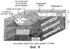 На Фиг.1 показана схема наземного устройства сейсморазведки. В этом устройстве сейсмическую энергию излучает сейсмический источник 1, расположенный на поверхности 2 Земли или под ней. При приведении источника в действие сейсмическая энергия проходит внутрь Земли и распространяется в направлении вниз через недра Земли до тех пор, пока не произойдет ее отражение от геологической структуры, действующей как частичный отражатель 3 сейсмической энергии. Отраженная сейсмическая энергия проходит в направлении вверх через недра Земли, а ее регистрацию осуществляют посредством группы сейсмоприемников 4, расположенных на поверхности Земли. Информацию о недрах Земли получают, например, путем определения времени прохождения сейсмической энергии от сейсмического источника 1 до приемников 4. На Фиг.1 показан всего лишь один отражатель 3, но в действительности в качестве частичных отражателей сейсмической энергии действуют несколько геологических структур, расположенных в недрах Земли.