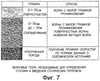 На Фиг.7 показана схема волновых полей, необходимых для того, чтобы можно было осуществить полную корректировку данных для построения изображения с введением поправок на влияние приповерхностной области. Как указано выше, приповерхностная область не всегда проходит до поверхности Земли и иногда существует тонкий слой, “непосредственно примыкающий к поверхности”, покрывающий приповерхностную область. В тех местах, где существует такой слой, для получения информации о свойствах этого поверхностного слоя необходим такой тип волны, которая проникает в землю на очень небольшую глубину. Как указано выше, для определения скорости распространения в слое, непосредственно примыкающем к поверхности, может быть использован вызванный воздушной волной “веер поверхностных волн”, созданный источником для построения изображения.