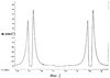 На фиг.2 и 3 изображены сигналограммы выходного напряжения фотоприемников 7 и 8 за один оборот поворотного столика 18, определяемый расстоянием между максимальными зарегистрированными пиками амплитуды, соответствующими прямому лазерному излучению, прошедшему через верхнюю часть 20 рассеивающего объема 1, находящуюся в кожухе 5. Остальные значения амплитуд сигналограммы между пиками соответствуют рассеянному на нефтяных частицах лазерному излучению в диапазоне углов 0°< <360°.