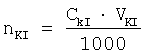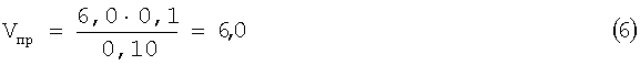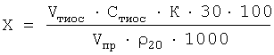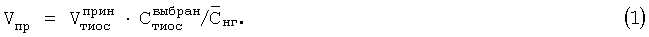 , моль/дм3) в анализируемой пробе на объем пробы (Vпр, см3) приравнивают к произведению концентрации титранта (раствора тиосульфата натрия с выбранной молярной концентрацией