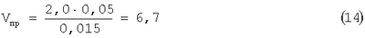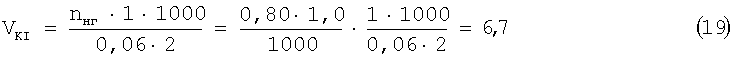 , принимают среднее арифметическое значение максимального и минимального значений молярной концентрации эквивалента нитроксильной группы в предлагаемом диапазоне концентраций. Отсюда значение рекомендуемого для обработки йодидом калия или натрия объема пробы составит, см3: