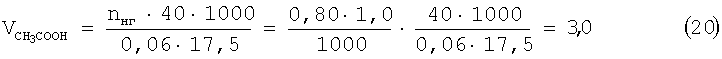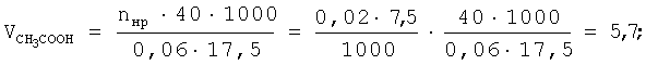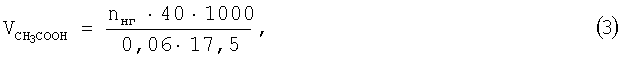 – объем концентрированной (17,5 моль/дм3) уксусной кислоты;