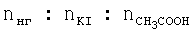 – коэффициенты, соответствующие мольным соотношениям (йодид калия или натрия): (нитроксильная группа) и (уксусная кислота) : (нитроксильная группа) соответственно.