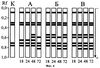 О токсичности проб воды в третьем варианте способа судят по энзимограммам ДНКазы (составу множественных форм), получаемых методом электрофореза в ПААГ по Дэвису с последующим окрашиванием гелей метиленовым синим. Электрофорез проводят в блоках (колонках или пластинах) ПААГ. В разделяющий гель в ходе приготовления вместо воды вносят водный раствор высокополимерной ДНК, предварительно денатурированной нагреванием (см. выше) из расчета 540 мкг ДНК на 1 мл ПААГ. Концентрация разделяющего ПААГ должна составлять 7,2%, отношение концентраций метиленбисакриламида и суммы мономеров в его составе 2,6%; для концентрирующего ПААГ эти величины должны равняться соответственно 3,9 и 20%. Перед нанесением экстракты белков разбавляют 40%-ным раствором сахарозы до конечной концентрации белка 1-2 мг/мл. При использовании колонок ПААГ высотой 8 см и диаметром 0,4 см на каждую наносят по 0,1 мл разбавленного экстракта, при использовании пластины ПААГ размером 15×6 см и толщиной 2 мм в ячейки сечением 1×5 мм и глубиной 10 мм вносят по 50 мкл образца. Электрофорез проводят в 0,032 М трис-глициновом буфере (рН 8,9) с бромфеноловым синим в качестве метчика, поддерживая температуру на уровне 5-7°С. Первые 10-15 мин (до вхождения белков в разделяющий гель) силу тока устанавливают равной 1,5 мА на колонку (1,5 мА/см ширины пластины), затем, до окончания электрофореза, ее увеличивают до 2,5 мА на колонку (2,5 мА/см пластины). Окончанием электрофореза считают смещение фронта, окрашенного метчиком, до 0,5-1 см от нижнего края блока ПААГ.