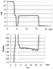 На фиг.6 приведен пример реальной осциллограммы напряжения на добавочном сопротивлении и соответствующая зависимость активного сопротивления полюса выключателя типа МКП-110 при Rдоп=1,1 кОм.