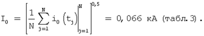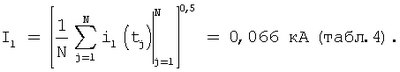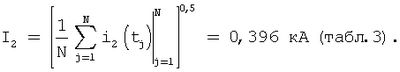 При работе блока расчета сохраняли пару цифровых отсчетов как текущую, определяли разность пары текущих цифровых отсчетов, изменяли разность значений сигналов пропорционально коэффициенту k=1. Далее определяли дважды действующее значение тока
